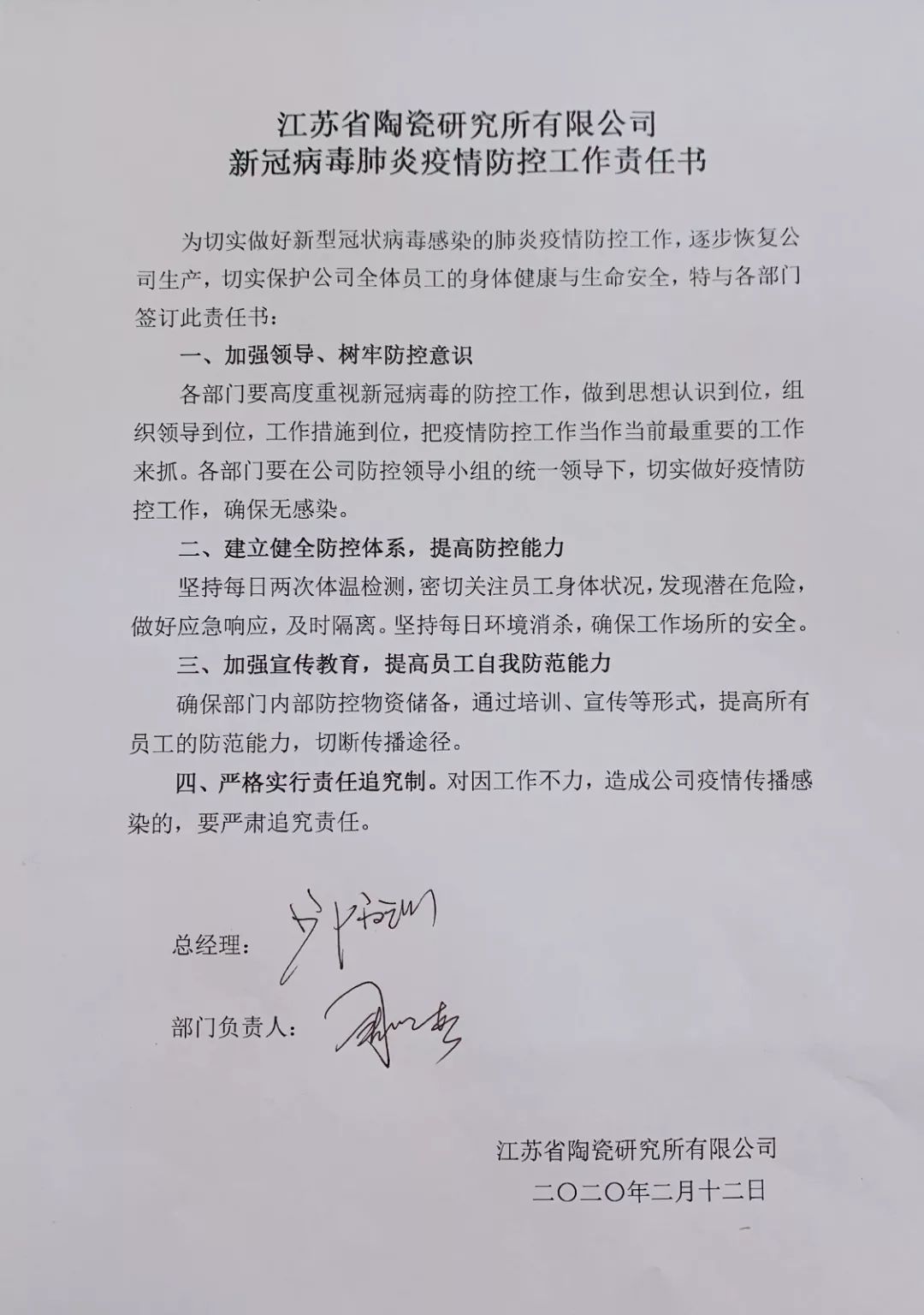 同時(shí),為切實(shí)做好疫情防控工作,加強(qiáng)責(zé)任落實(shí),會(huì)上,各部門主要負(fù)責(zé)人與公司簽訂了新冠肺炎疫情防控工作責(zé)任書(shū)。